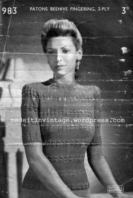 Free 1940's Knitting Pattern - Patons Beehive Fingering 2 ply Blouse