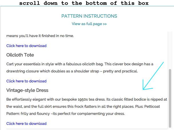 To download the dress pattern you will need to scroll down to the bottom of the little box titled